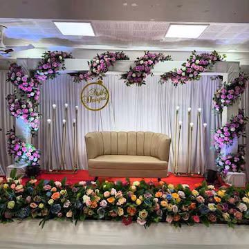 Our services cover stage décor, mandap floral work, entrance gates, walkway decorations, backdrop styling, table arrangements, car decoration, flower vases, garlands, and customized floral structures. We use premium, long-lasting flowers to maintain freshness throughout the event.